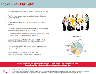 O CGI Group, provedora canadense de serviços de tecnologia da informação (TI), anunciou hoje um acordo para a aquisição da Logica, companhia britânica do mesmo segmento. Além de assumir uma dívida de 322 milhões de libras (US$ 501 milhões), a CGI pagará 105 pence (US$ 1,63) por ação ordinária da Logica, avaliando a transação em um total de 1,7 bilhão de libras (US$ 2,6 bilhões). A expectativa é que a operação seja concluída no fim de setembro.