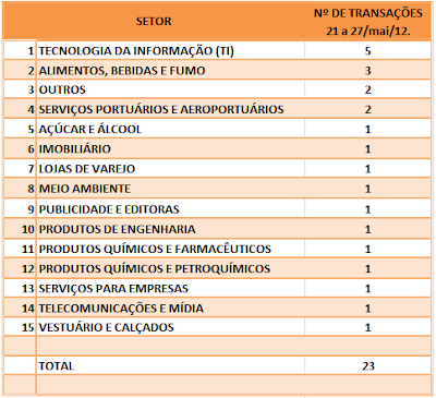 FUSÕES E AQUISIÇÕES - DESTAQUES DA SEMANA DE 21/mai a 27/mai/12.