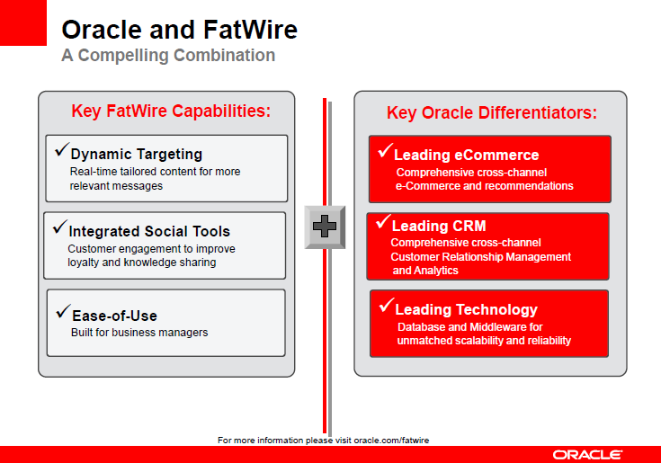 O objetivo da Oracle com a aquisição é aumentar a oferta de soluções para melhorar o engajamento com clientes em diversas plataformas: internet, dispositivos móveis e redes sociais (BI, CRM, Enterprise Content Management, WebCenter and ATG Web Commerce).