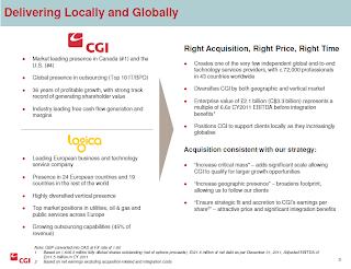 A CGI divulgou apresentação na "Conference call" no dia 31/05/2012, cujos principais slides destacamos abaixo.