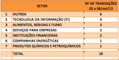 FUSÕES E AQUISIÇÕES - DESTAQUES DA SEMANA DE 02 a 08/set/13