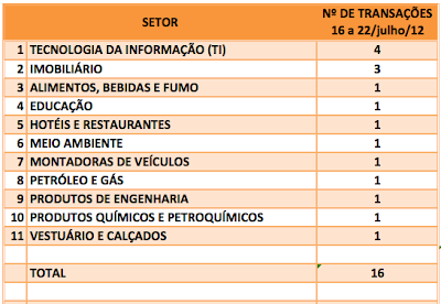 FUSÕES E AQUISIÇÕES - DESTAQUES DA SEMANA DE 16/jul a 22/jul/12