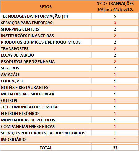 FUSÕES E AQUISIÇÕES – DESTAQUES DA SEMANA DE 30/jan a 05/fev/12.