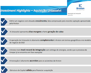 RACIONAL & VALUE DRIVERSVale destacar as informações disponibilizadas no site da KROTON a respeito da aquisição da Uniasselvi. Dada elevada transparência e a qualidade das informações, seguem abaixo principais slides da apresentação.