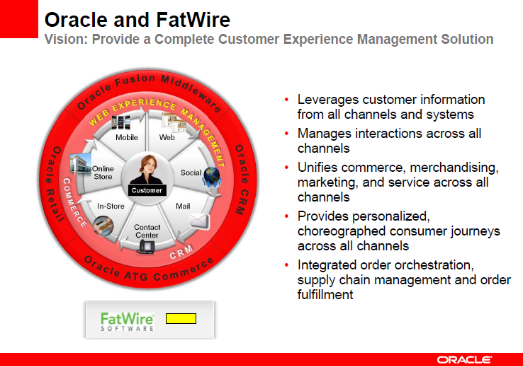 O objetivo da Oracle com a aquisição é aumentar a oferta de soluções para melhorar o engajamento com clientes em diversas plataformas: internet, dispositivos móveis e redes sociais (BI, CRM, Enterprise Content Management, WebCenter and ATG Web Commerce).